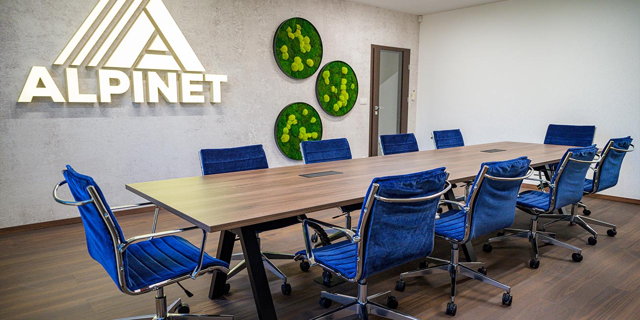 Kancelária riaditeľa a zasadacia miestnosť pre klienta Alpinet sa stali príkladom modernej funkčnosti a dizajnu. Priestor sme navrhli tak, aby bol nielen reprezentatívny, ale aj praktický a ergonomický, čo zlepšuje pohodlie a efektivitu práce.