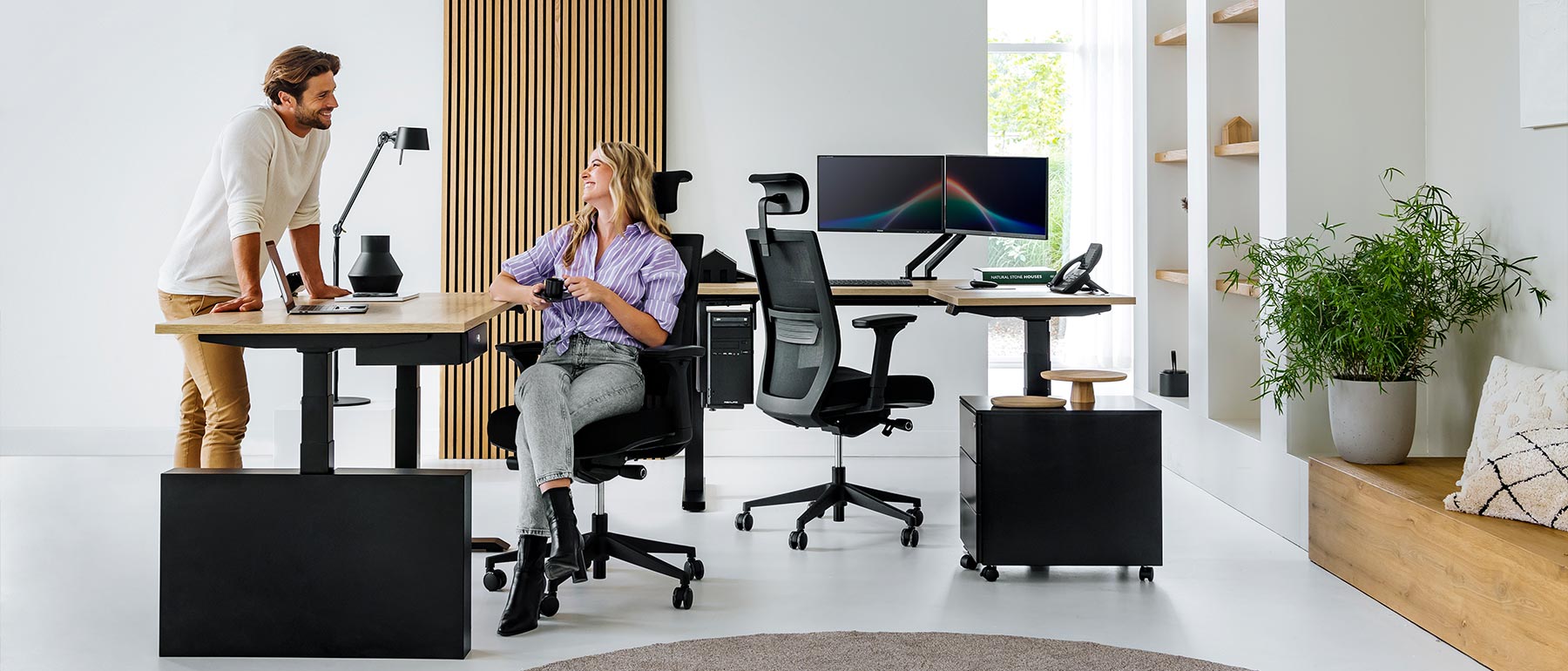 Veríme, že funkčné pracovisko musí byť nielen estetické, ale aj zdravé. Kombinujeme technológiu, ergonómiu a dizajn, aby sme vytvárali priestory, ktoré podporujú pohyb, sústredenie a prirodzený komfort.
