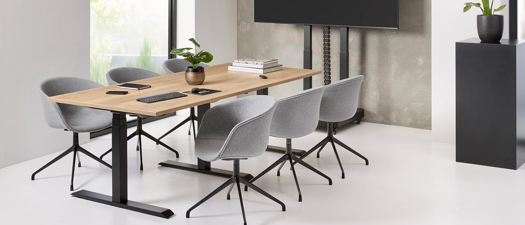 Naše výškovo nastaviteľné stoly prinášajú rovnováhu medzi estetikou a funkčnosťou. Vďaka precíznemu spracovaniu a tichému motorovému systému umožňujú plynulý prechod medzi sedením a státím, čím podporujú zdravé držanie tela a zvyšujú produktivitu.