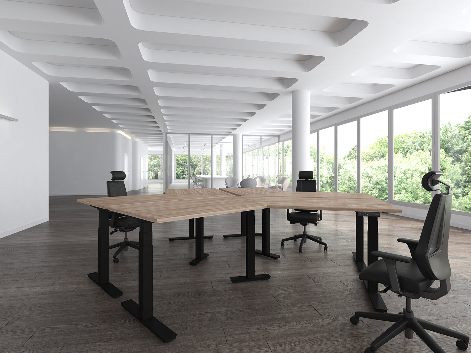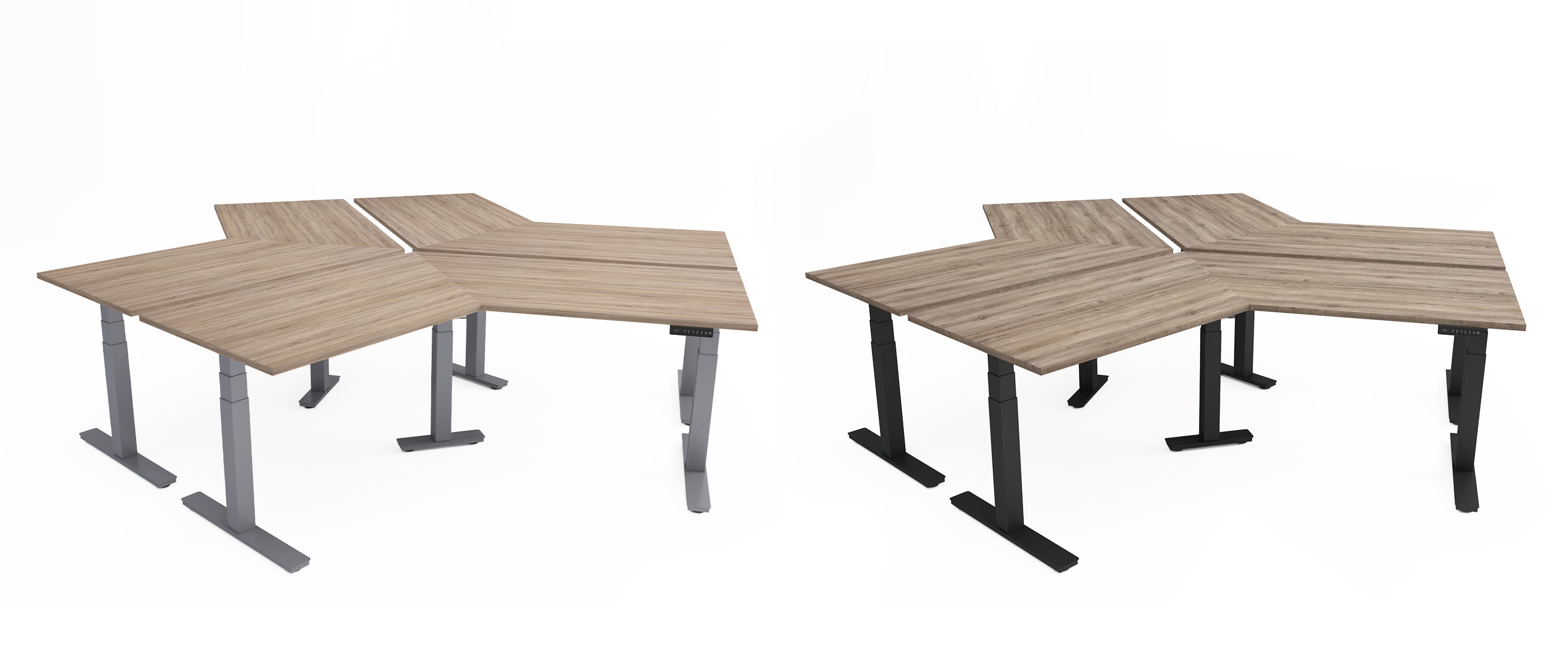 Tento typ stola je väčšinou využívaný klientami, ktorí potrebujú pre svoju prácu viac priestoru. Práve 120 stupňový uhol pracovného stola umožňuje využitie rôznymi smermi. Nastavovanie dĺžky konštrukcie umožňuje položiť rôzne veľkosti pracovných dosiek.