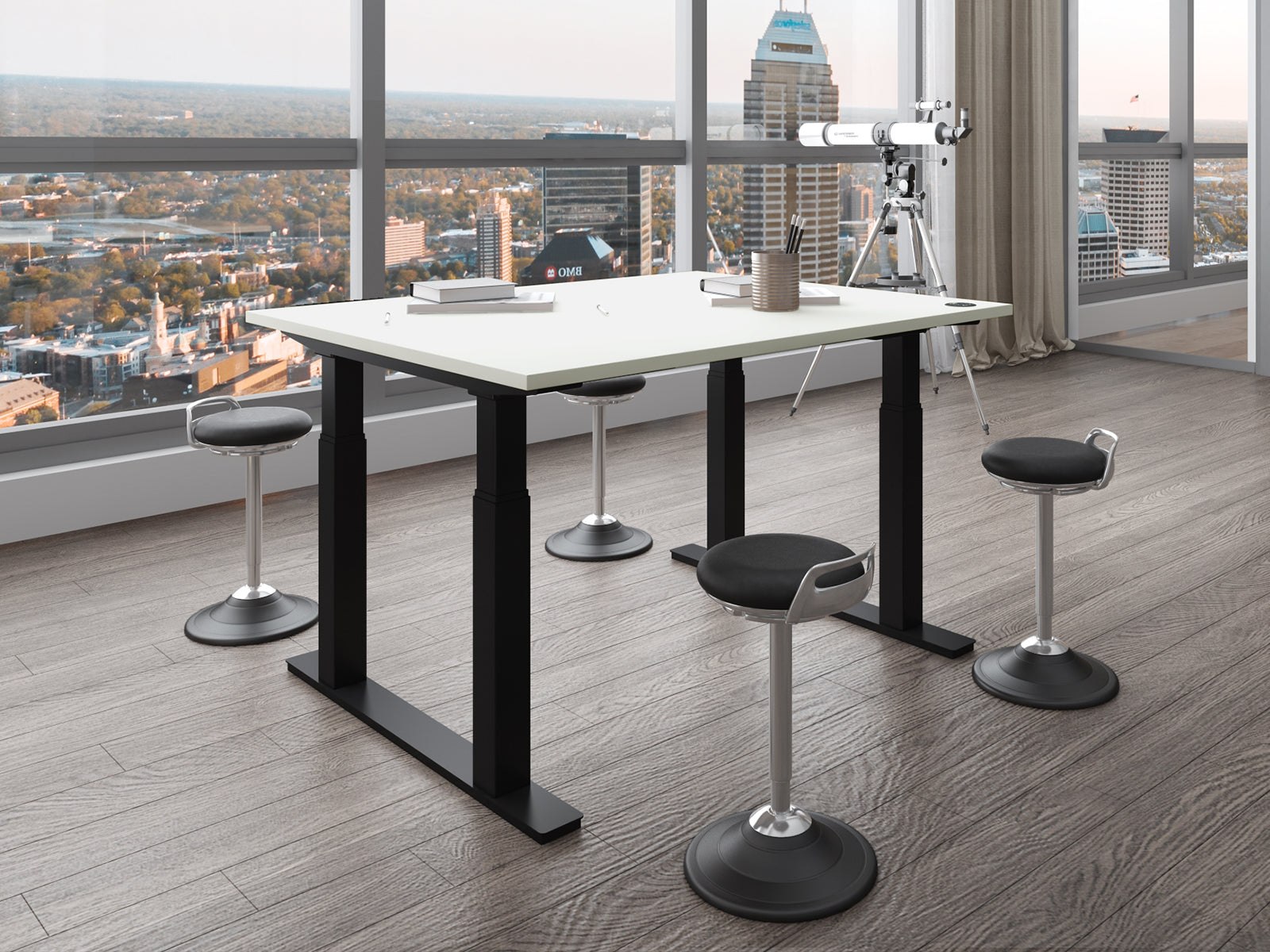 Nová masívna podnož QUADRO s výškovo nastaviteľnou konštrukciou a štyrmi motormi. Táto výkonná podnož môže byť použitá ako konferenčný stôl alebo ako rozšírené nastaviteľné pracovisko pre remeselníkov s maximálnou zdvihovou nosnosťou až 200 kg.