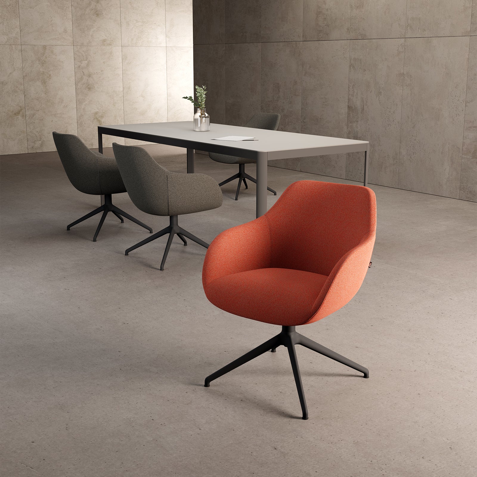 Multifunkčná a elegantná stolička Lamy nájde svoje využitie v najrôznejších priestoroch. Vďaka možnosti prispôsobenia jej vzhľadu totiž veľmi jednoducho mení svoju tvár. Na kolieskovom podstavci je ako stvorená do kancelárií, zatiaľ čo na nožičkách perfektne doplní zasadačky a konferencné miestnosti či dokonca lounge a recepcie.