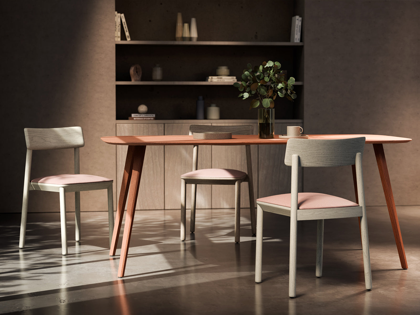 Masívna stolička nesúca stopy prírody vo svojich vzoroch. Získavajúc svoj vizuálny charakter rozhodnutiami architekta, séria stoličiek a barových stoličiek Mika pokrýva výnimočné detaily pre každú kombináciu materiálu a farby vo svojom dizajne. Nohy a operadlo na chrbát sú z masívneho dreva, zatiaľ čo povrch sedadiel je z preglejky. Ihličnaté, orechové a čierne šktruktúry masívneho dreva oživujú stoličku podľa vášho výberu. Pocit prirodzenosti dreva vo všetkých farebných možnostiach stoličky je možné ľahko vnímať.